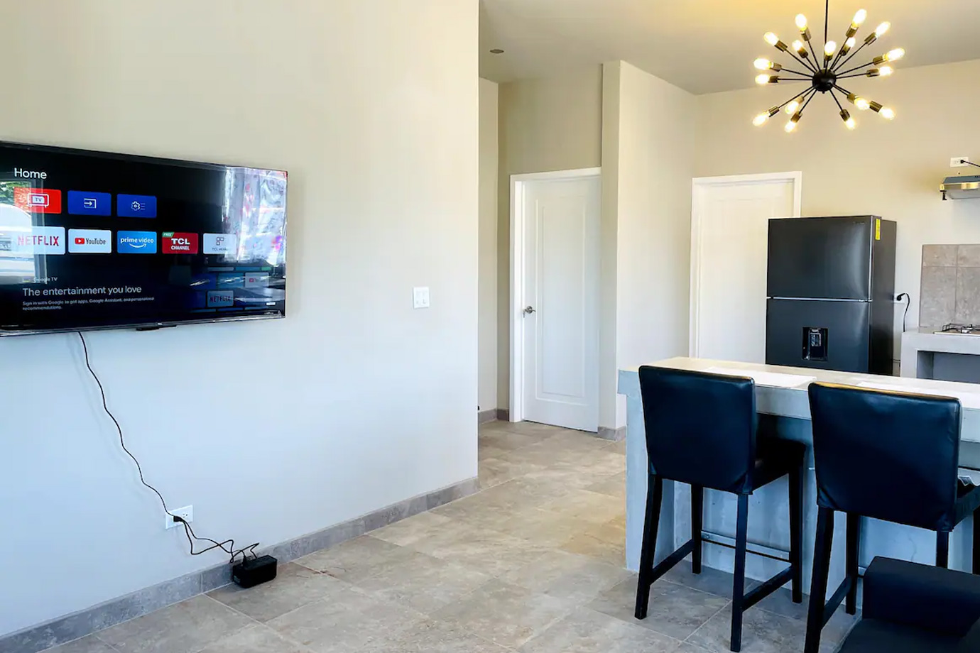 Si desea descansar y pasar un rato agradable puede hacerlo ya que cada casa cuenta con televisón de 55" con sus aplicaciones favoritas.
